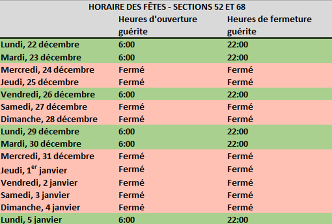 Horaire des navires